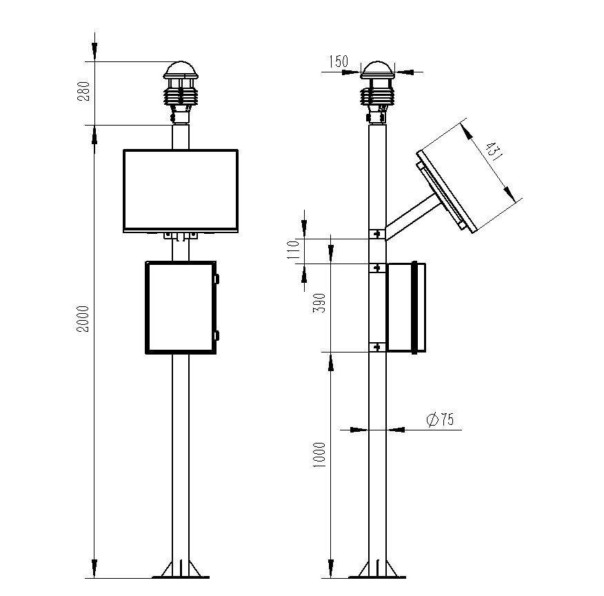 5、兩米碳鋼支架,頂部無(wú)需法蘭盤(pán)可直接套接傳感器
